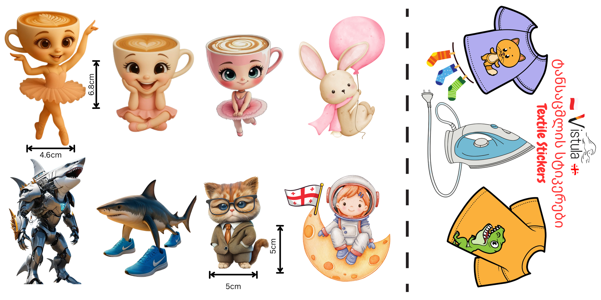ტანსაცმლის (ტექსტილის) სტიკერი 8 ცალიანი სეტი/ Textile Sticker 8 Pieces Set